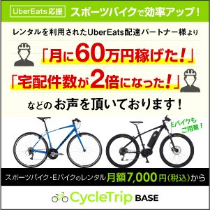 1カ月レンタル可!東京ウーバーイーツ配達におすすめなスポーツ自転車